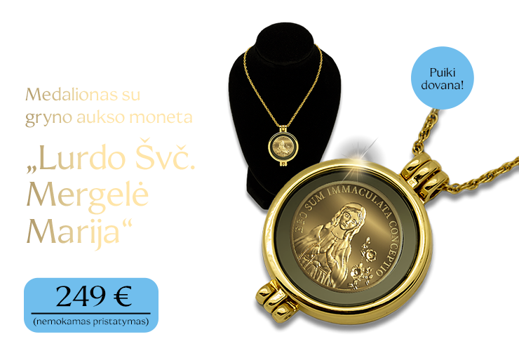 Taip, aš užsisakau medalioną su aukso moneta „Lurdo Švč. Mergelė Marija“ už 249 € (nemokamas pristatymas). Sąskaitą apmokėsiu atsiimdamas/-a siuntą arba internetu.