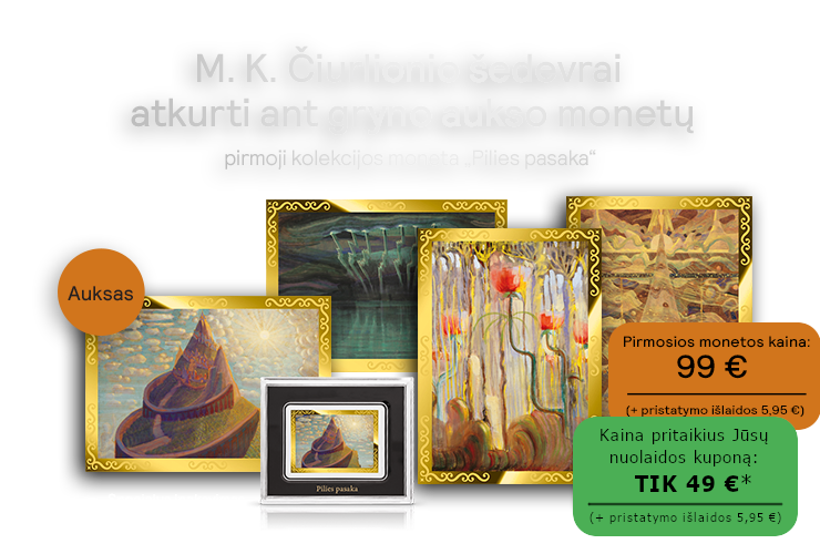 Taip, aš užsisakau aukso monetų kolekciją „M. K. Čiurlionio paveikslai“ ir sutinku periodiškai gauti po vieną kolekcijos monetą.