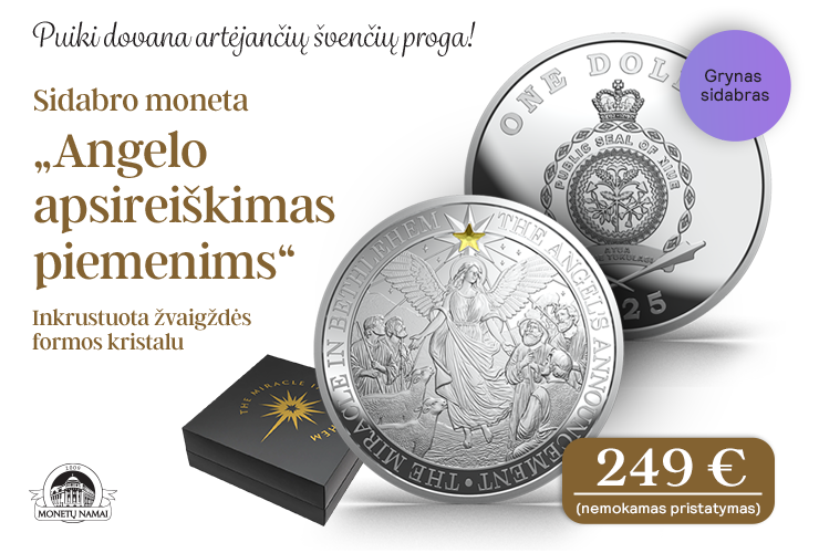 Taip, aš užsisakau sidabro monetą „Angelo apsireiškimas piemenims“ už 249 € (nemokamas pristatymas). Sąskaitą apmokėsiu atsiimdamas/-a siuntą arba internetu.