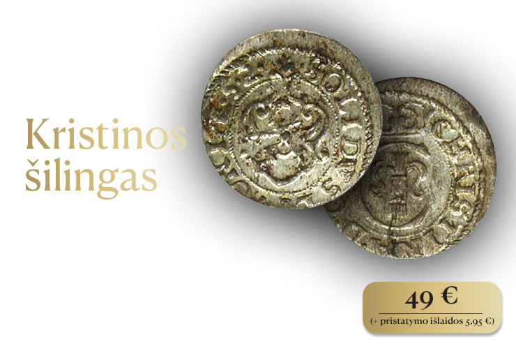 Taip, aš užsisakau autentišką monetą Kristinos šilingas už 49 € (+ pristatymo išlaidos 5,95 €). Sąskaitą apmokėsiu atsiimdamas/-a siuntą arba internetu.